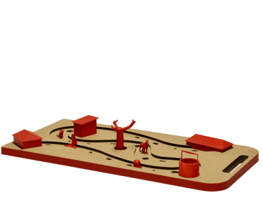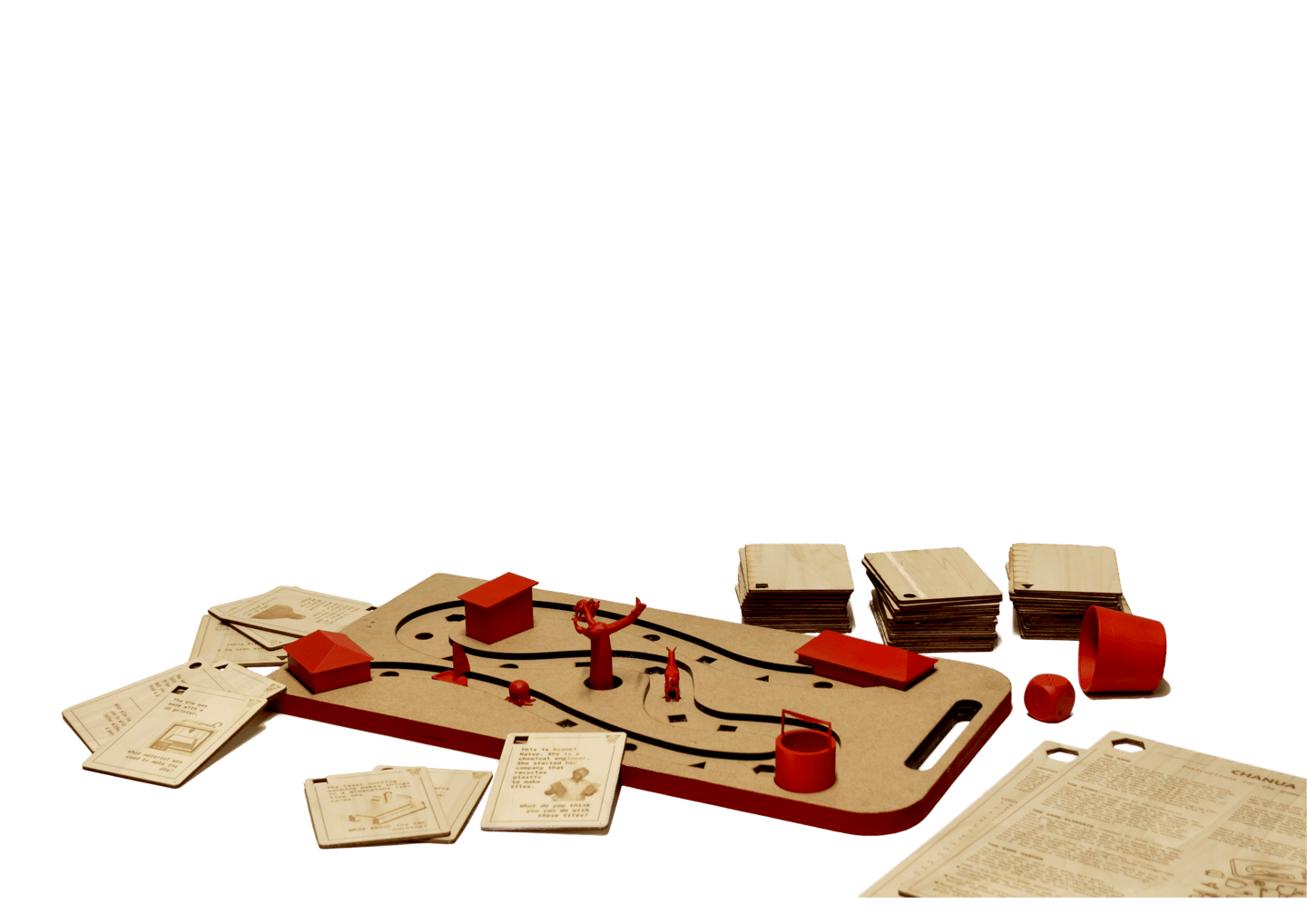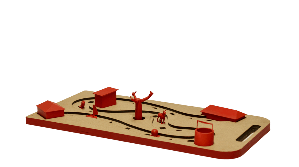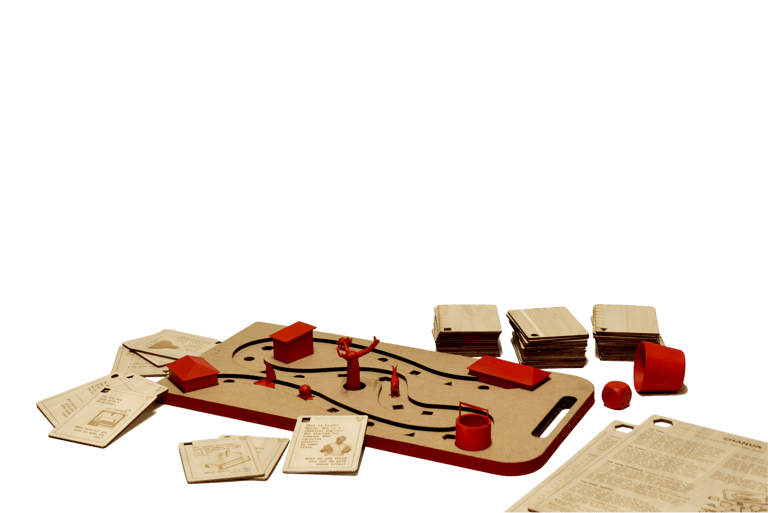 The board game is designed to use local resources: expertise and machinery from the Red Cross maker space, and materials found nearby.