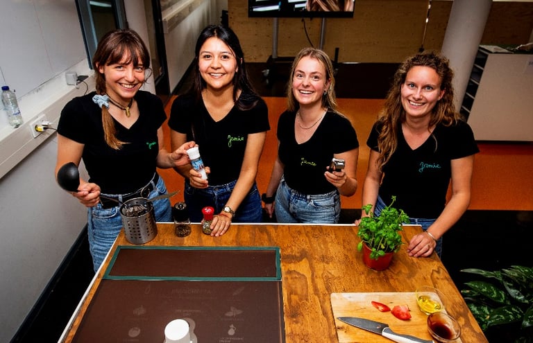 Jamie is a smart kitchen top with an AI embedded interface guiding home cooks to adopt a sustainable eating lifestyle.